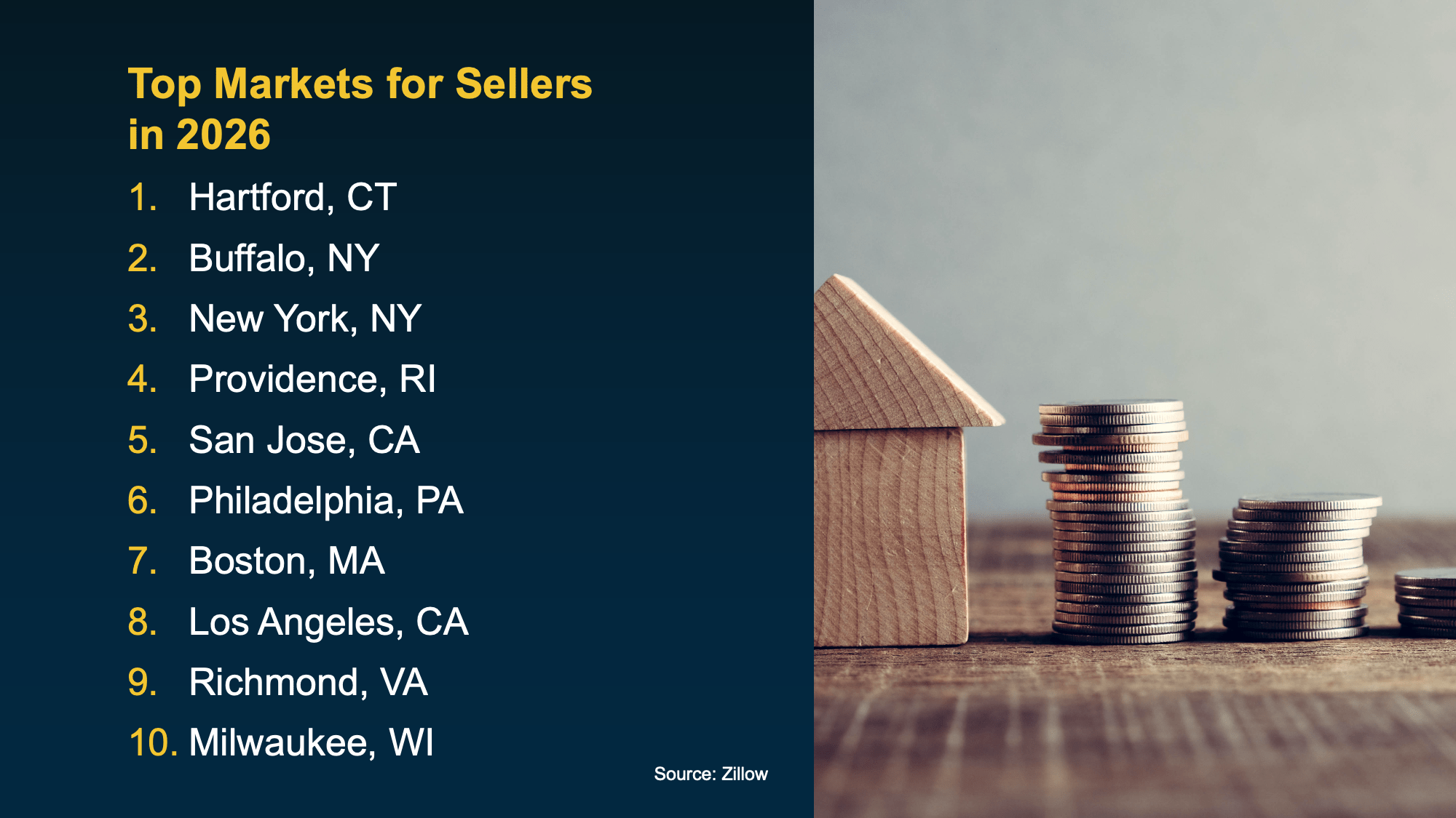 Zillow identified the following metros as some of the strongest seller markets for 2026, based on buyer demand, pricing momentum, and how quickly homes are expected to sell: